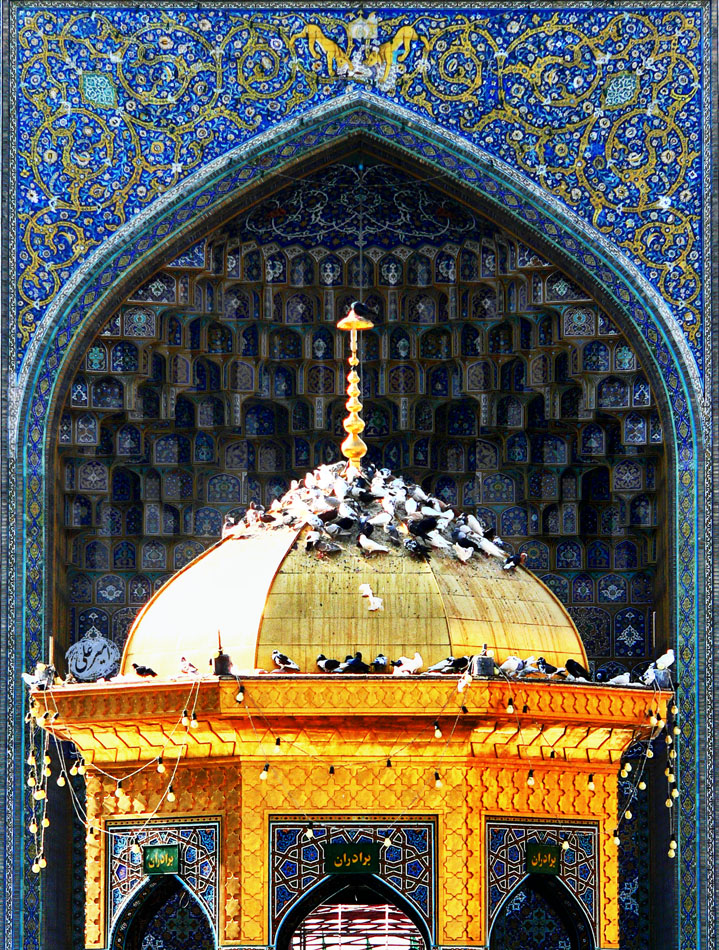 پس از شهادت امام هشتم، ایشان را در طوس در مقابل قبر هارون عباسى به طرف قبله که بارگاه مقدس فعلى آن امام است به خاک سپردند، و مأمون عباسى پس از قتل امام رضا (ع) به بغداد بازگشته و آنجا را مرکز خود قرار داد.